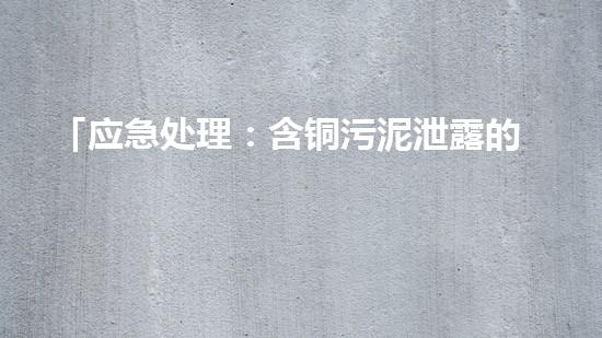 含铜污泥泄露事件需要应急处理方案,以最优的方式减少污染的扩散。方案包括各种技术和方法,例如使用化学剂进行吸附、沉淀,或利用生物方法分解有害物质。另外,将污染土壤挖掉或加入其他材料覆盖亦是有效的方法。