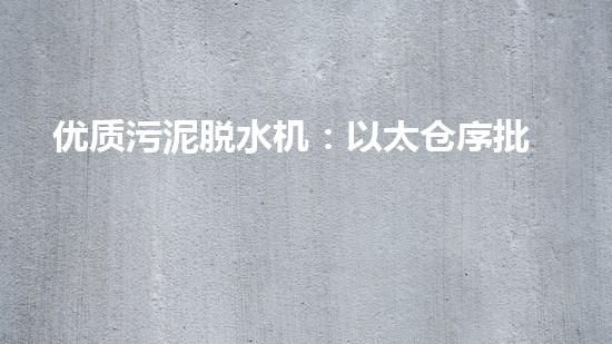 本文介绍了优质污泥脱水机——以太仓序批式新技术的优点。这一新技术具有高效的脱水效率,安全的操作过程和环保的特点。同时,本文也提到了巴洛仕集团专业的污泥处理和生态环保,与太仓序批式脱水机的技术结合,将为更加有效的污染治理和资源化利用做出贡献。