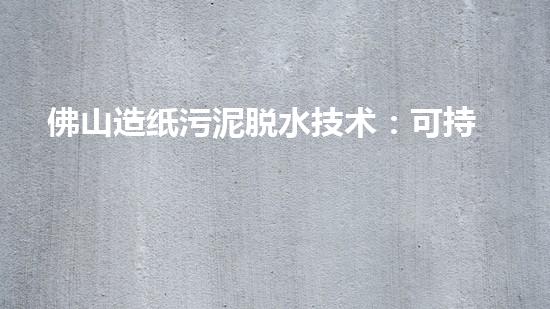 佛山造纸污泥脱水技术:可持续发展的大胆尝试是当前环保领域中备受关注的一个话题。本篇文章将深入探讨该技术的内容,介绍该技术的意义和未来发展方向。