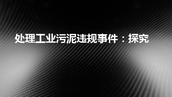 随着工业的不断发展,工业污染已成为全球共同面临的环境问题之一。而工业污泥作为固体废弃物之一,其处理的违规行为已经引起了广泛的关注。本文将探究负责任的机构与解决方案,来对工业污泥违规事件进行处理。