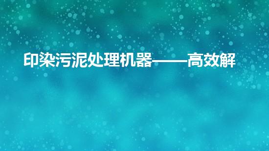 随着时代的发展和技术的进步,印染污泥处理机器也不断推陈出新,出现了许多新的技术和机型。