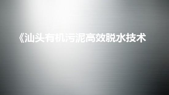 相信随着技术的不断更新迭代,汕头有机污泥高效脱水技术一定会取得更加令人瞩目的表现。