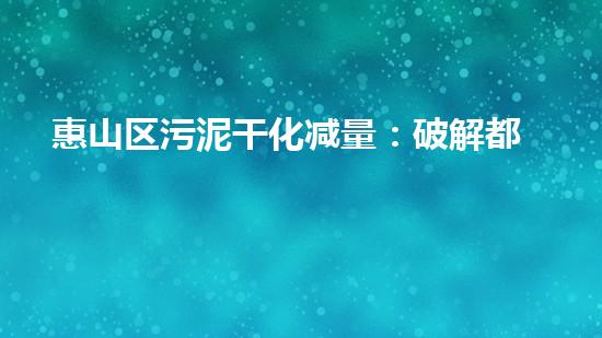 惠山区污泥干化减量:破解都市处置难题的创新实践