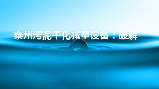 泰州污泥干化减量设备:破解污泥处置难题的绿色钥匙