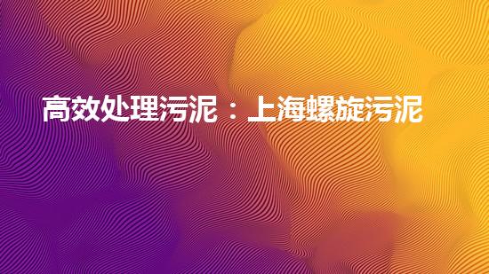 高效处理污泥:上海螺旋污泥脱水机制造原理及应用