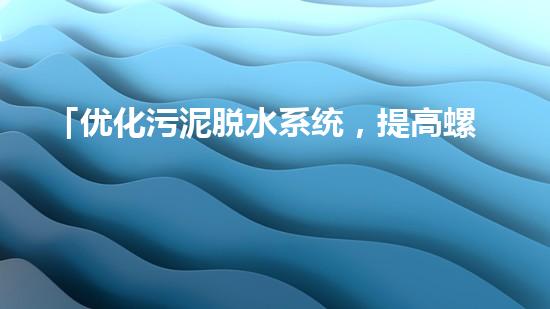 「优化污泥脱水系统,提高螺旋式污泥脱水效率」