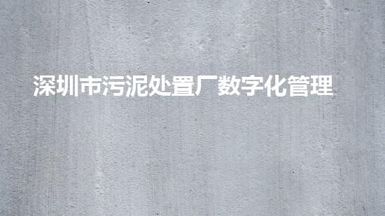 深圳市污泥处置厂数字化管理系统的建设与应用
