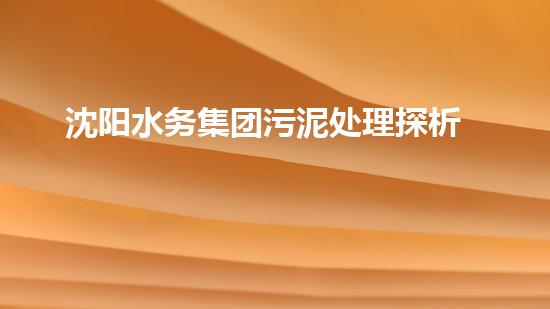 沈阳水务集团污泥处理探析