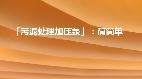 「污泥处理加压泵」:简简单单搞定污泥的烦恼