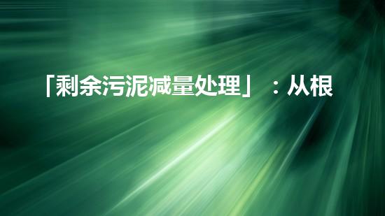 「剩余污泥减量处理」:从根源上解决废弃物问题