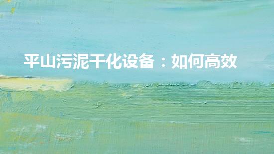 平山污泥干化设备:如何高效处理污泥及节能减排的实现
