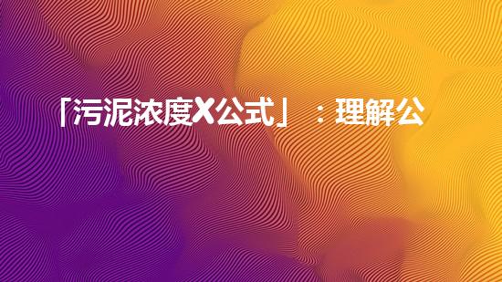 「污泥浓度X公式」:理解公式,控制浓度,净化环境。
