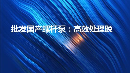 摘要:本文主要介绍批发国产螺杆泵高效处理脱水污泥的专业知识。随着环境保护意识的提高和污水处理需求的增加,螺杆泵作为一种高效、可靠的污水处理设备得到了广泛的应用和发展。一、螺杆泵的基本原理螺杆泵是一种利...