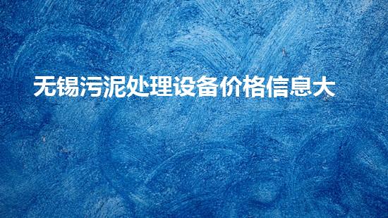 无锡污泥处理设备价格信息大揭秘