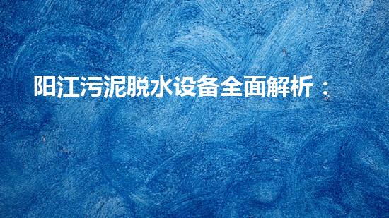 阳江污泥脱水设备全面解析:技术原理、应用案例、市场前景
