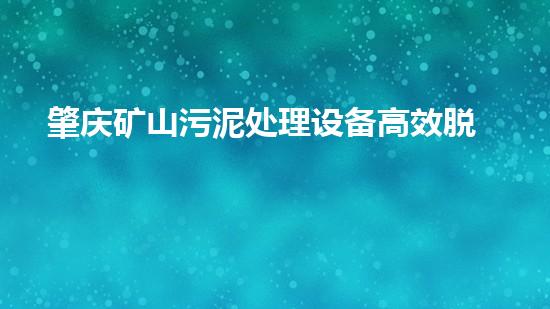 肇庆矿山污泥处理设备 高效脱水机械生产商