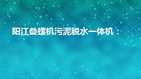 阳江叠螺机污泥脱水一体机:污泥处理新利器