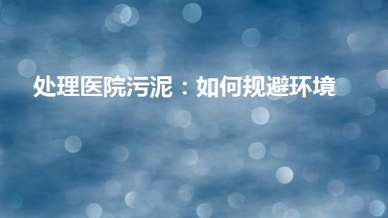 摘要:医院污泥处理对环境有很大的风险,本文将从多个方面对处理医院污泥:如何规避环境风险?进行详细的专业阐述,涉及垃圾分类、治理技术、资源利用等多个方面,帮助读者更好的了解医院污泥的处理和规避环境风险。...