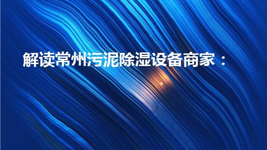 解读常州污泥除湿设备商家:技术、价格、服务全解析