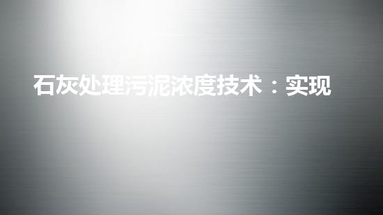 石灰处理污泥浓度技术:实现高效处理和资源化利用