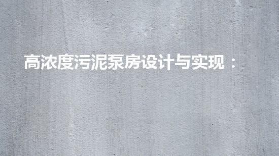 高浓度污泥泵房设计与实现:以长治为例
