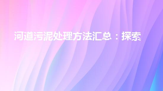 河道污泥处理方法汇总:探索可持续、高效的处理技术
