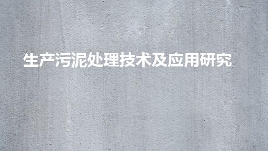 生产污泥处理技术及应用研究