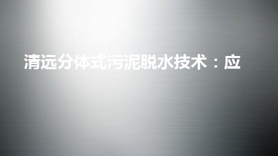 清远分体式污泥脱水技术:应用与发展