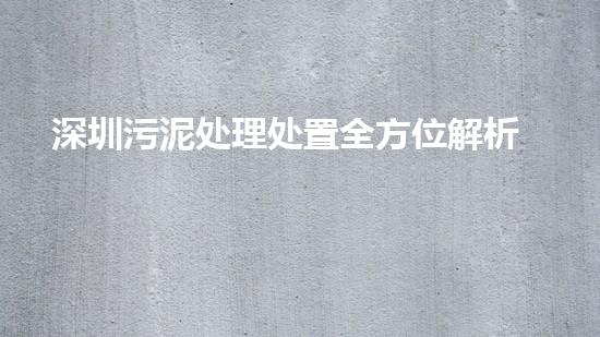深圳污泥处理处置全方位解析:技术路线、问题与展望
