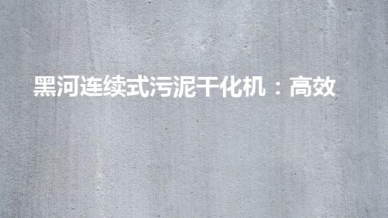 黑河连续式污泥干化机:高效解决污泥问题的利器