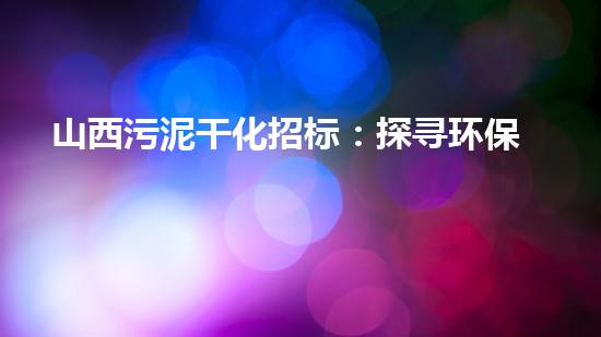 综上所述,山西污泥干化招标的成功应用将引领污泥处理技术的新潮流,推动环保事业的发展。