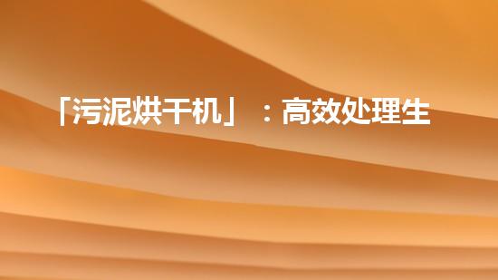 摘要:随着城市化进程的迅速推进,生活污泥的处理已经成为一项紧迫的环保任务。而污泥烘干机作为一种高效处理生活污泥的环保节能设备,日益受到人们的青睐。本文将详细介绍污泥烘干机的工作原理、优点、应用范围、市场前景等相关信息,为读者解析这种新兴的环保设备。