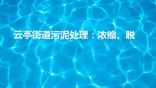 云亭街道污泥处理:浓缩、脱水、实现资源化