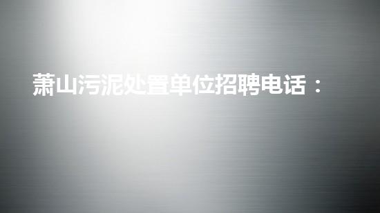 萧山污泥处置单位招聘电话:优质岗位等您来!