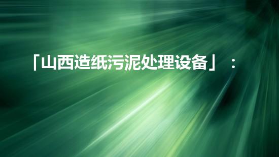 山西造纸污泥处理设备在处理污泥方面具有以下优势:
