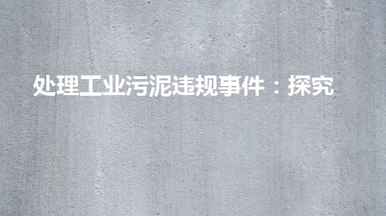 随着工业的不断发展,工业污染已成为全球共同面临的环境问题之一。而工业污泥作为固体废弃物之一,其处理的违规行为已经引起了广泛的关注。本文将探究负责任的机构与解决方案,来对工业污泥违规事件进行处理。