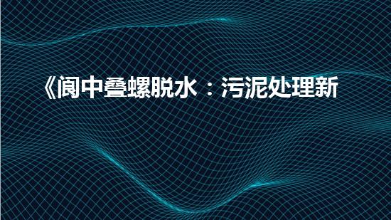 摘要:本文将介绍《阆中叠螺脱水:污泥处理新突破》这篇文章,让读者对污泥处理有更深入的了解,并提供相关背景信息。