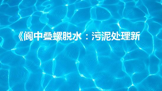 摘要:本文将介绍《阆中叠螺脱水:污泥处理新突破》这篇文章,让读者对污泥处理有更深入的了解,并提供相关背景信息。一、阆中叠螺脱水技术解析污泥是城市化发展中无法避免的产物,其处理一直是环保行业的一大难题。...