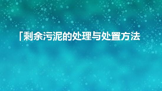 「剩余污泥的处理与处置方法探讨」。