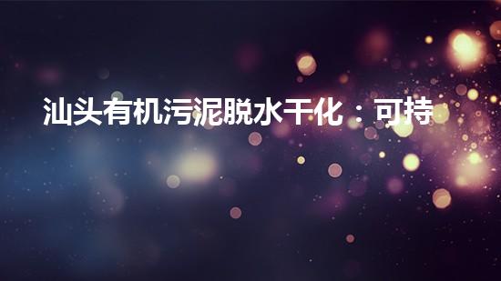 汕头有机污泥脱水干化:可持续处理城市有机废弃物