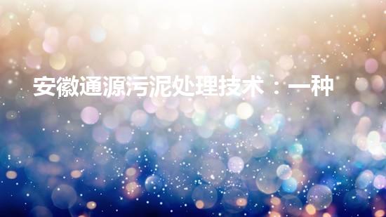 安徽通源污泥处理技术:一种可持续发展的环保解决方案
