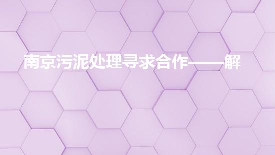 南京污泥处理寻求合作——解决污染难题,共享环保未来