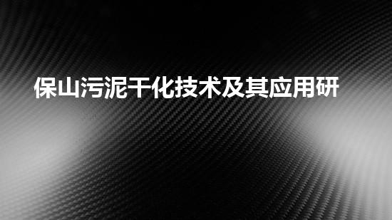 保山污泥干化技术及其应用研究