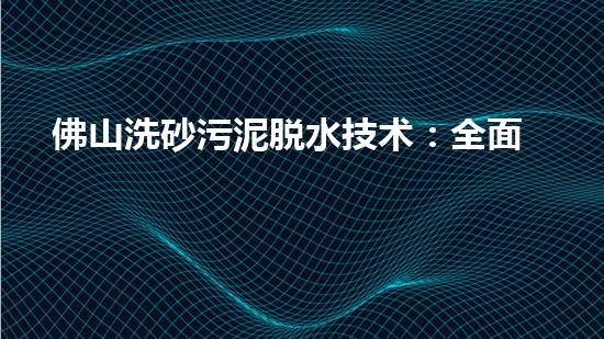佛山洗砂污泥脱水技术:全面解读处理难题
