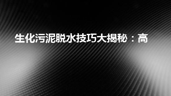 生化污泥脱水技巧大揭秘:高效环保污泥处理
