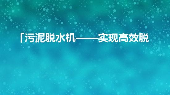 摘要:随着现代城市化进程的加快,城市污水处理工作也日益增多。污泥的脱水处理是污水处理过程中不可或缺的一环。本文以“污泥脱水机——实现高效脱水的神器”为主题,详细介绍了污泥脱水机的原理、特点以及应用。通...