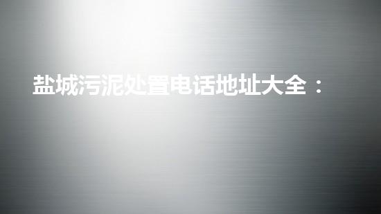盐城污泥处置电话地址大全:专业处理污泥,让环境更纯净