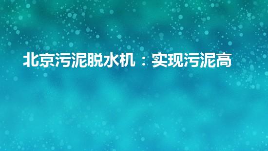 北京污泥脱水机:实现污泥高效快速脱水的关键工具