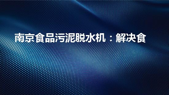 南京食品污泥脱水机:解决食品厂污泥问题的利器