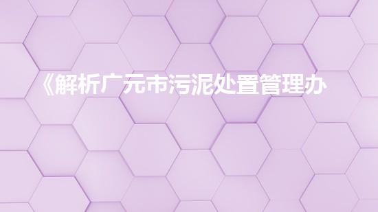《解析广元市污泥处置管理办法》